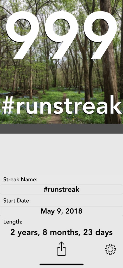 A thousand days sounds like a long time. A thousand days IS a long time. A thousand days works out to almost 33 months–just 95 days short of three years. And, while I have started my personal project of commenting on political social media posts that I take issue with, as I said I was going to do in last week’s post, this week I’m going to focus on something completely different: my run streak. And how tomorrow, February 1st, 2021, will be the 1000th day in a row that I’ve run at least a mile.