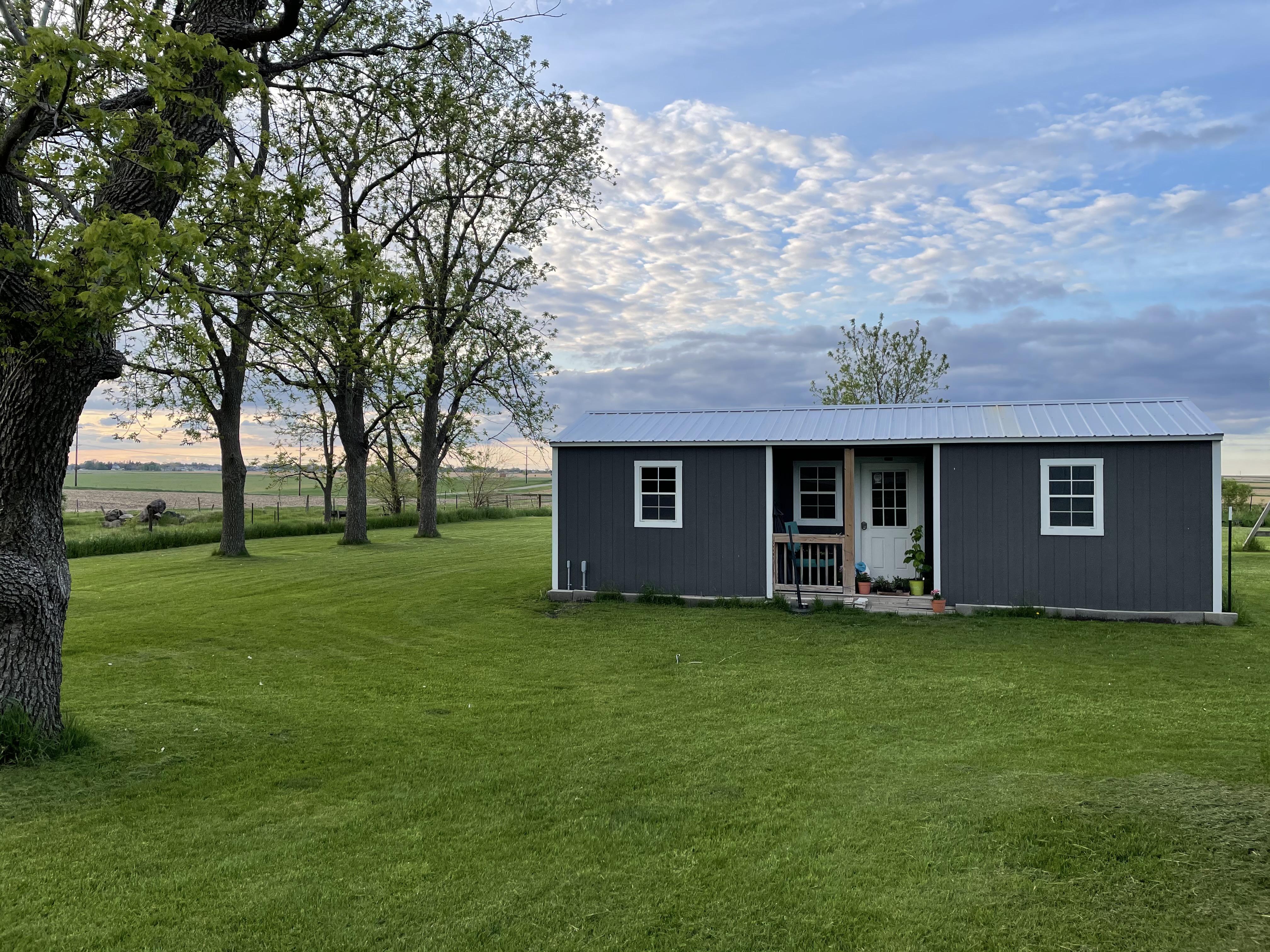 As I’m typing this, I’m sitting outside on the little porch of our “Quarantine Cabin”. I think I’ve mentioned The Cabin before, but just to give a few more details, The Bearded One and I currently rent a little house from my parents. It mostly works out nicely because I’m close and can help my dad out on the farm when he needs it, but it’s small. When we got married, we each essentially had a house full of stuff, so when he moved in with me here, we didn’t have room for everything. We both got rid of some, but there still wasn’t enough room for it all, so in March of 2020, at the very beginning of the pandemic, we decided to make a purchase: a prebuilt 12’x32′ building which I like to call The Cabin because it makes me feel fancy. We decided we could fix it up and make it into some extra living space. It took us a while to get electricity run to it, and we’re still getting it finished inside, but I don’t know what I would have done without the extra space this past year–especially the teeny tiny covered porch it came with.