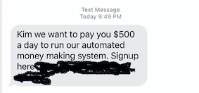 I was just sitting here, at 9:49 on a Sunday night, just about to start my weekly blog post, when my phone vibrated. I looked and it was this totally legitimate sounding offer: