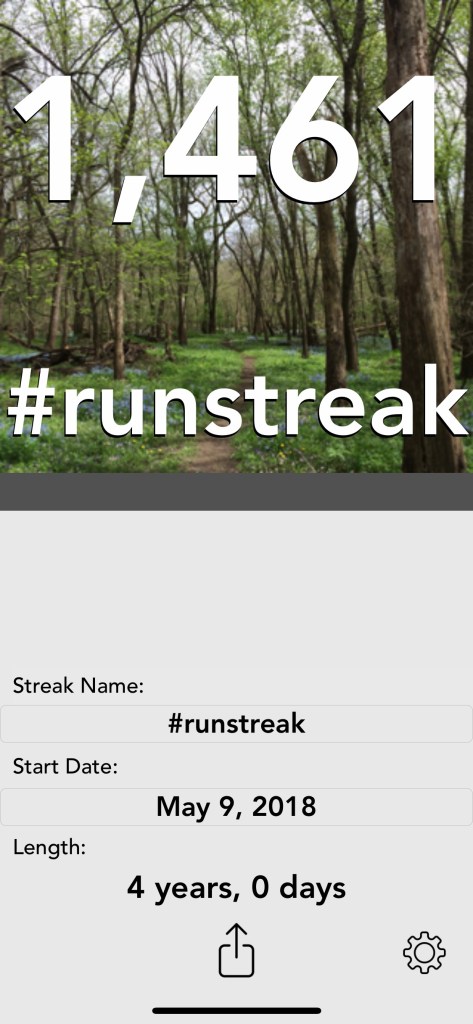 Today I completed four years of running at least a mile every.single.day. I’ve probably mentioned it before, but when I started my streak in 2018, I was looking for something stable that I could control. I had submitted my resignation for my job, and knew I was burned out teaching Spanish, but I didn’t have another job lined up and didn’t know what I wanted to do. And someone I knew had just shared on Facebook about her run streak. So, I went out and ran a mile one day. And then I did it again the next day, and the next, and so on and so forth for the next 1,461 days.